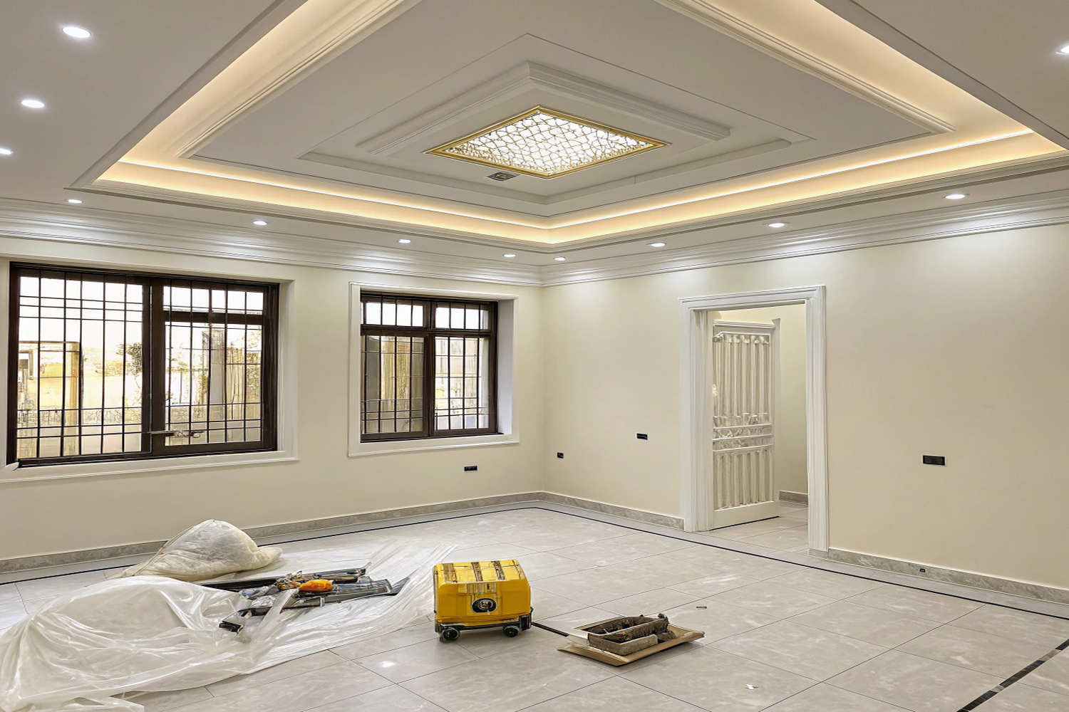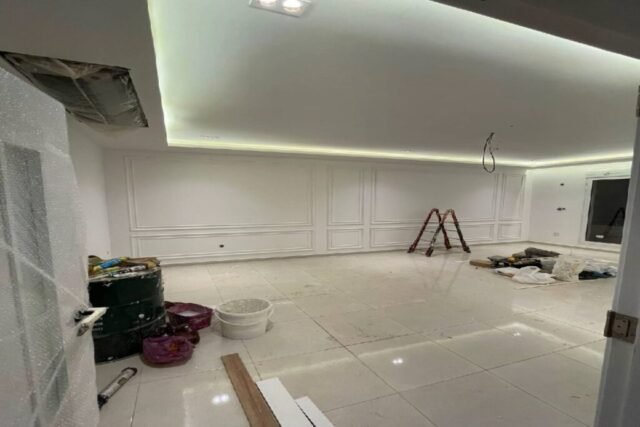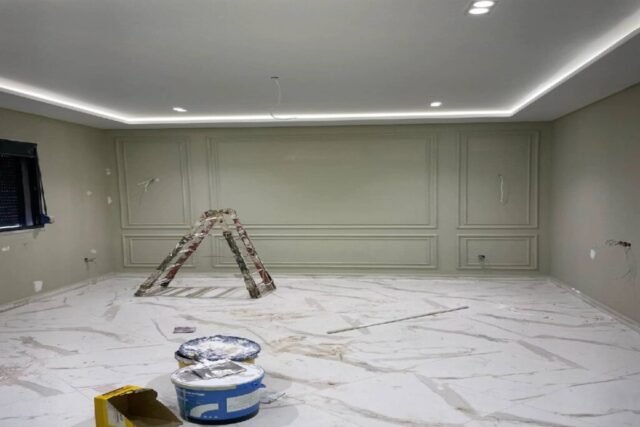 تنفيذ التشطيبات النهائية من أصباغ، ديكور، إنارة، وأرضيات