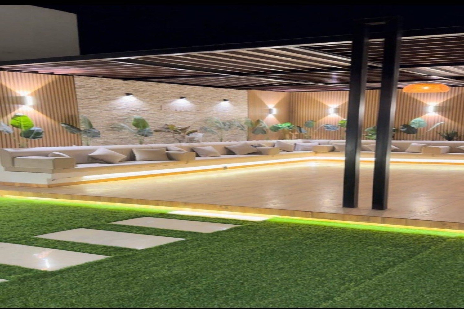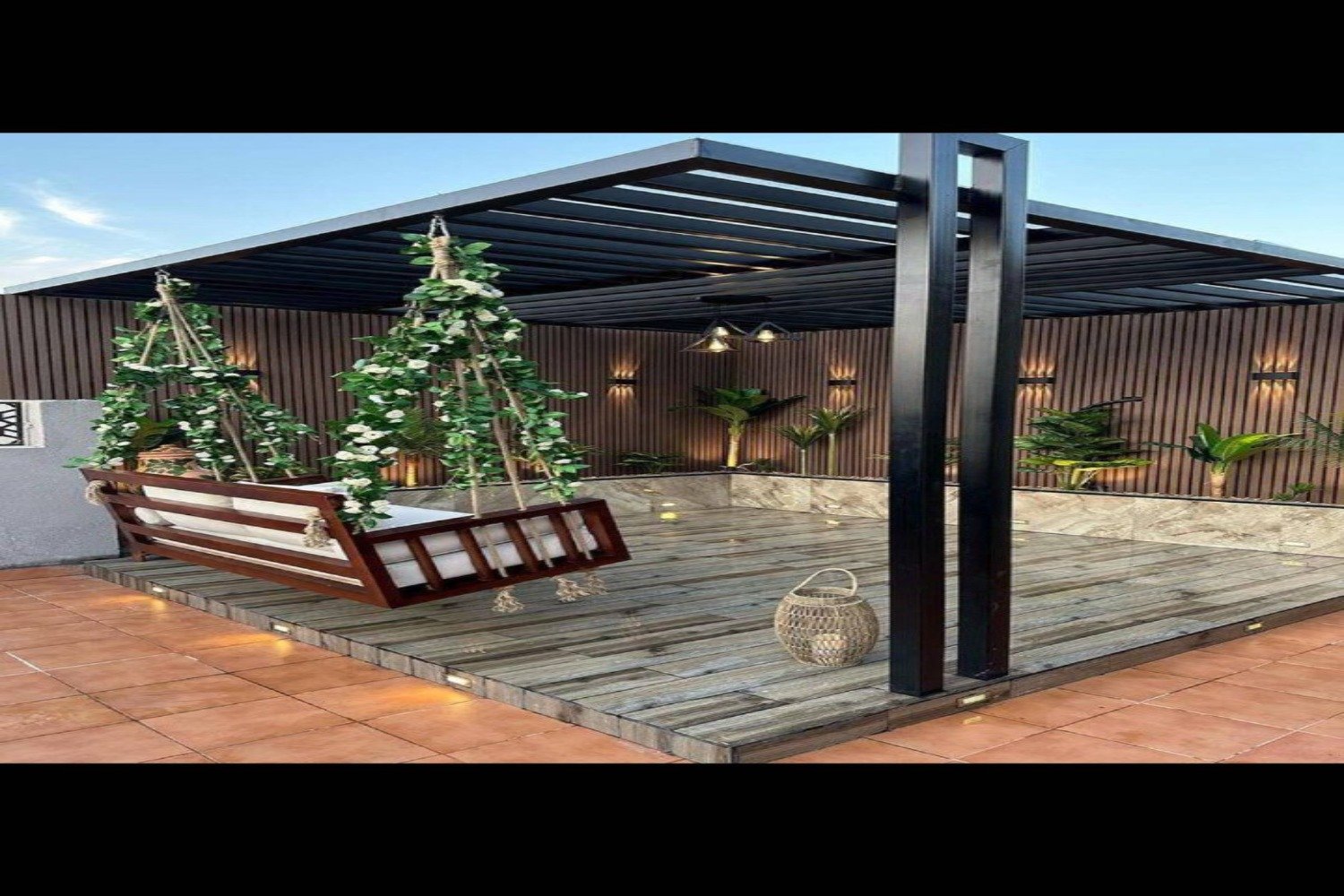 🌿 تنسيق حدائق وبرجولات خشبية بأسلوب هندسي مميز