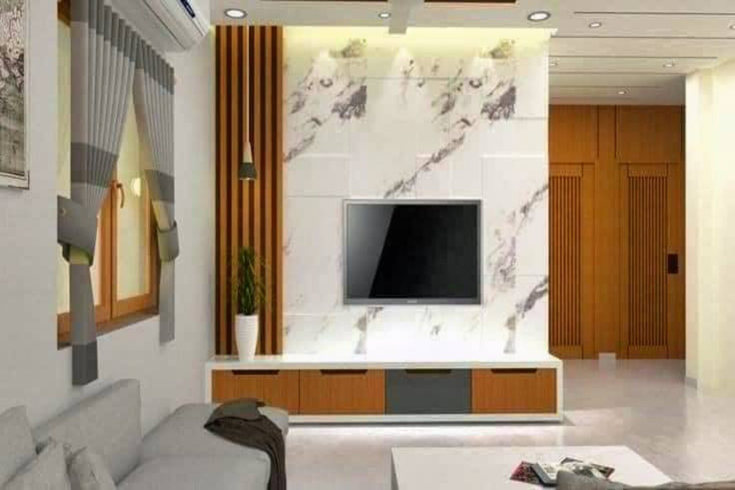 تصميم ديكورات شاشات التلفاز والمداخل والرفوف